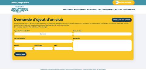 Suite à votre demande d'ajout de votre club ou école de natation, vous recevrez un mail automatique de la part des équipes de Destination Aquatique.