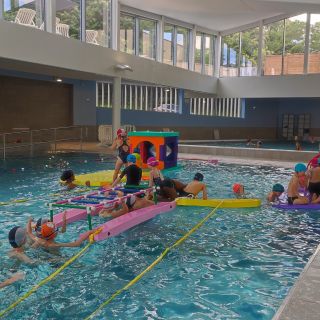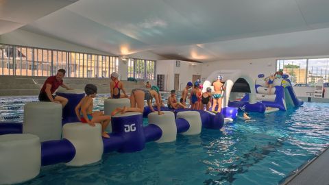 Dans le bassin sportif, une structure gonflable est installée durant l'année.