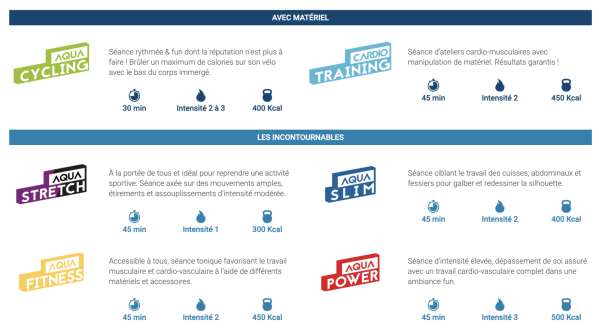 Consultez le planning des séances d'aquagym pour connaître les horaires.