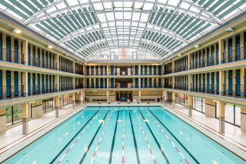 La piscine Pailleron est l'une des plus belles de tout Paris, classée monument historique avec son style art déco avec des briques rouges et des cabines d'époques.