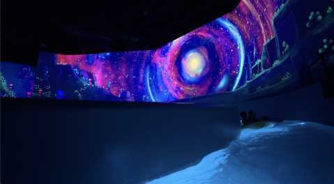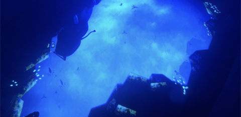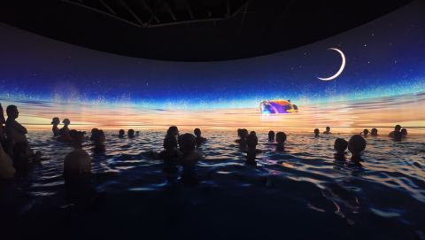 Cet espace vous plongera dans une immersion aqua-numérique où les interactions vidéo sont liées à la surface de l'eau, pour réaliser un spectacle unique.