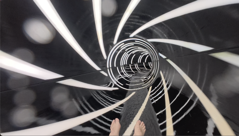 Une descente Flash sous un jeu d'effets d'optique à 2 dans une bouée pour un moment magique.