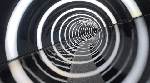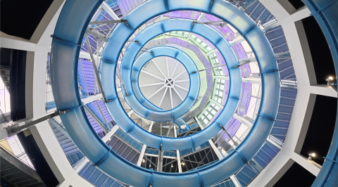 Ce qui fait la beauté de ce toboggan est les effets d'optiques grâce aux anneaux de couleurs présents sur l'ensemble du tube.