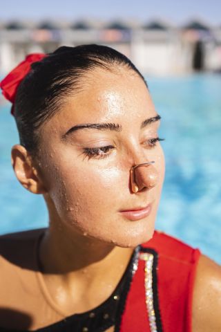 Les nageurs professionnels réalisent une technique pour bloquer davantage l’entrée de l’eau par le nez en venant plaquer la lèvre supérieure de leur bouche au niveau des voies nasales.